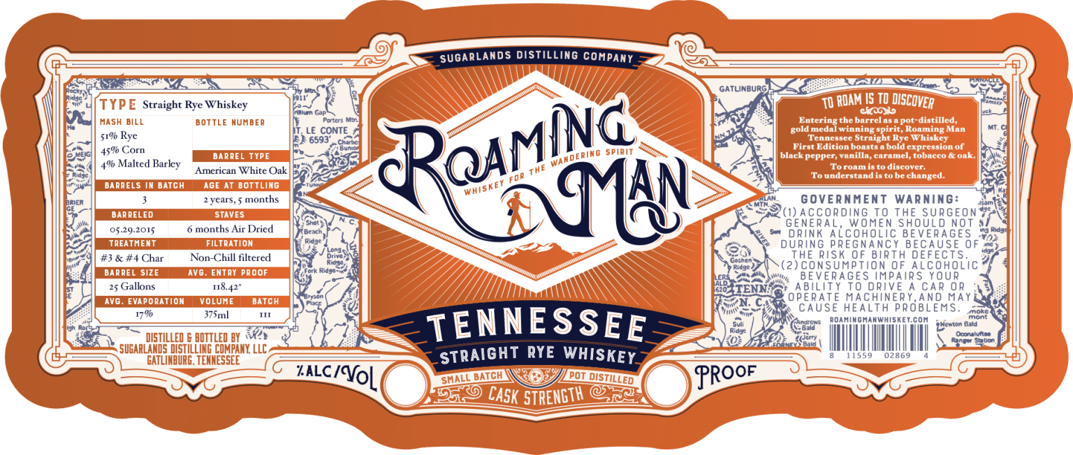 Your Roaming Man was bottled at “cask strength,” meaning it was transferred directly from the barrel to the bottle without the addition of water. “Straight” means there are no additives or coloring, which are often included in other whiskeys. Rye grain is responsible for the intense spice, creating this remarkably bold spirit. Now… sip wisely.
