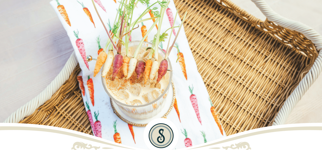 1.5 oz. hrv 1.5 oz. chocolate coffee 2 oz. carrot cream mini carrots nutmeg combine in shaker of ice and strain over ice Garnish with nutmeg sprinkles